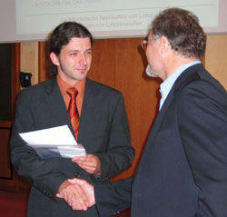 Auszeichnung für Studenten Der GTS-Innovationspreis für die beste DiplomarbeitDie GTS hat einen Innovationspreis für die beste Diplomarbeit auf dem Gebiet des Thermischen Spritzens ins Leben gerufen. Die Idee dazu hatte Günter Schürholt von Saint-Gobain Ceramic Materials Weilerswist GmbH. Der finanzielle Grundstock für den GTS-Innovationspreis von derzeit 4.000 Euro wurde durch die Versteigerung von original signierten Fußbällen der deutschen Fußball-Nationalmannschaft anlässlich der GTS-Mitgliederversammlungen 2002 und 2003 in München bzw. Dresden und zusätzlichen Spenden geschaffen. Die von Herrn Schürholt gespendeten Bälle erbrachten dabei zusammen den Spenden 2.500 Euro. Herr Mayer von der Firma Heinz Mayer GmbH Maschinenbau in Holzmaden erklärte sich aufgrund der tollen Resonanz auf die Schürholt-Idee bereit, für die nächsten 3 Mal je 500 Euro zusätzlich zu spenden. Berechtigt für den GTS-Innovationspreis ist jede bei einem GTS-Mitglied durchgeführte oder von einem GTS-Mitglied eindeutig initiierte Diplomarbeit. Die Arbeit darf bei Einreichung nicht älter als 3 Jahre sein und muss als Thema das Thermische Spritzen beinhalten. Die Verleihung findet alle 2 Jahre anlässlich der GTS-Mitgliederversammlung statt. Neben der öffentlichkeitswirksamen Anerkennung der Diplomarbeit winkt dem Preisträger ein Geldpreis von 800 Euro.
