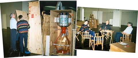 In großen, schweren Kisten wurde das Equipment des GTS-Messestandes