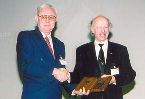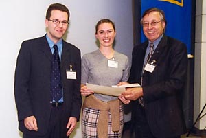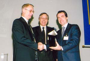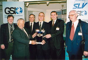 Firmenleistungsschau eine Auszeichnung entgegen, überreicht von Prof. Lugscheider (rechts) und Jens