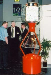 Der GTS-Exponateständer mit beleuchteter Plexiglaskugel |