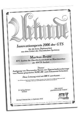 Qualitätssicherung auf hohem Niveau mit einer Zertifizierung durch neutrale Dritte, z.Z. die SLV München, NL der GSI mbH: Die Gemeinschaft Thermisches Spritzen e.V. (GTS) hat mit ihrem GTS-Zertifikat, das bis heute einzige Zertifikat weltweit geschaffen, welches zusätzlich zu den Qualitätsmanagementelementen der DIN EN ISO 9001:2000, das Personal, den Prozess und – auf Wunsch – auch ein Produkt oder eine Schicht für das Thermische Spritzen zertifiziert. Ausbildung von Thermischen Spritzern: Die GTS war Pionier bei der Einführung von Regeln zur Ausbildung von Thermischen Spritzern und Aufsichtspersonen. So waren die GTS Regeln die Basis für jetzt gültige internationale EWF-Ausbildungsrichtlinien. Zwischenzeitlich sind schon mehrere Hundert Personen zum European Thermal Sprayer (ETS, Thermische Spritzer) und knapp 150 zum European Thermal Spraying Specialist (ETSS, Thermische Spritzaufsichtperson) von der SLV München ausgebildet worden. Normen- und Merkblattservice für GTS-Mitglieder: Jedes GTS-Mitglied ist über einen GTS-Normendienst immer mit den aktuellsten und neuesten Normen und Merkblättern des Thermischen Spritzens ausgestattet, und was sehr erfreulich ist: die Normen werden im täglichen Betrieb auch eingesetzt, was eine GTS-Interne Umfrage bestätigt hat. Normenarbeit: GTS-Mitglieder sind auch bei der Gestaltung von neuen Normen, Richtlinien und Merkblättern sehr aktiv beteiligt und nutzen natürlich auch in enger Zusammenarbeit mit den Mitgliedern die Gelegenheit, einzugreifen, damit die erstellten Regelungen praxisnah und damit anwendbar sind. Weltweite Patentüberwachung: Jedes GTS-Mitglied wird über den GTS-Patentservice über neueste Patente und Patentanmeldungen informiert und damit in die Lage versetzt, wenn nötig rechtzeitig reagieren zu können, z.B. Einspruch erheben. Seit Einführung dieses Dienstes im Juli 1995 wurden über 440 Patentinformationen an GTS-Mitglieder versandt. Unser eigenes Informationsorgan – der „GTS-Strahl“: Seit dem ersten Erscheinen im Dezember 1994 sind bis heute 17 Ausgaben des GTS-Strahls erschienen, die letzte als Sonderheft zum 7. HVOF-Kolloquium. Neben hoch wissenschaftlichen Beiträgen und Berichten aus der Geschäftsstelle bietet der GTS-Strahl jedem einzelnen Mitglied eine Plattform für fachliche oder persönliche Beiträge. Er soll darüber hinaus … • über Neuigkeiten, Zahlen und Fakten und Internes aus der GTS